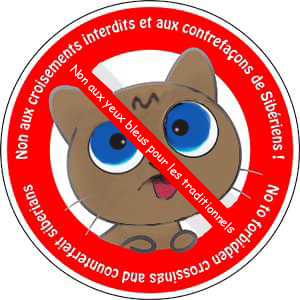 ATTENTION AUX ARNAQUES : Lorsque vous lisez " type Sibérien " en aucun cas cela est un pur race ! Ne vous laissez pas attirer par un "élevage" qui ne fourni pas de pédigrée. Cette personne vous dira probablement : " Si vous ne prenez pas le pédigrée, je vous fait une réduction sur le prix, le pédigrée ne vous sert à rien " => FAUX ! Seuls les éleveurs inscrit dans une société féline peuvent obtenir des pédigrées car leur reproducteurs y sont enregistrés. Avec un pédigrée, vous avez une preuve que l'accouplement ne comporte pas de consanguinité ou que le chaton n'est pas le fruit d'un SIB voir d'un croisé avec une autre race de chat que SIB (Sibérien traditionnel) ou NEM (Sibérien Néva Mascarade). Les mentions SIB ou NEM sont inscrites pour chaque ancêtres. Si l'éleveur n'a pas encore le pédigrée du chaton, vous êtes en droit de demander à voir les pédigrées des parents (et si le père n'est pas dans la chatterie demandez à voir le certificat de saillie ). Vérifiez si une mention "castré" n'y est pas inscrite sur les pédigrées des parents. Si le vendeur vous refuse ce droit... Fuyez mes braves gens ! Ces chatons sans pédigrée ne peuvent pas être vendu + de frs 500,- mais pour ce prix, ils devront tout de même être vaccinés complétement, le numéro de puce d'identification devra figurer sur le carnet de vaccination qui vous sera remis avec le chaton âgé de 3 mois. Demandez à quoi correspond le prix annoncé : attention lorsque c'est "prix brut" ou "Tout les soins nécessaires sont à faire par vos soins" cela veut dire que vous allez payer en plus du prix demandé : les vaccins, la puce d'identification, la stérilisation/castration, le chat n'a peut être même jamais été vermifugé 1x par mois et n'a peut être pas l'âge requit pour être séparé de sa mére... Un indice pour un chaton Sibérien de 3 mois : son poids (qui varie en fonction du sexe) doit être bien supérieur à 1 kg. N'oubliez pas de demander un contrat de vente et pas seulement une quittance. Le contrat de vente doit stipuler toutes les données du chaton et de l'éleveur. Les 3 premiers numéros de puce d'identification des chatons nés et enregistrés en Suisse c'est : n°756............, les éleveurs frontaliers auront peut être choisi un vétérinaire dans le pays d'à côté : 250 = France, 276 = Allemagne, 380 = Italie. Photos volées sur des sites de chatterie ou comptes FB! à regarder sur YouTube à propos du Site : chatonsderace.com Ne jamais verser d'accompte sans avoir été dans la chatterie ! Pas de croisement avec d'autres races de chats ! ![]() Certaines personnes sont allergiques aux chats; quelque unes ne sont sensibles qu'à la protéine FLD 1 Tous les chats possèdent cette protéine, aucun chat n'est anallergique (qui ne provoque pas d’allergie) pour les humains mais le Sibérien possède moins de cette protéine que les autres races. On parle alors d'hypoallergénique (qui diminue les risques d’allergie) En croisant avec d'autres races de chats, le taux de cette protéine FLD 1 augmente chez les chatons issus d'un tel accouplement ! Malheureusement, il existe des lignées impures ce qui est intolérable ! Il y a bien assez de diversité de couleur naturelles chez les Sibériens, nul besoin de croiser avec du Somali pour obtenir des couleurs qui de plus sont interdites dans le standard des Sibériens !!! ![]() Non aux croisements interdits et aux contrefaçons de Sibériens. Après les croisement avec des chats de race Somali, nous voilà avec des "Sibériens" traditionnel avec les yeux bleus !!! Attention aux contrefaçons ! Seuls les Sibériens Névas Mascarade ont les yeux bleus. Très rare sont les Sibériens Traditionnels même avec du blanc qui ont des yeux vairons (dont un bleu) et encore plus rare ceux qui ont les 2 yeux bleus. Des croisements interdits ont été fait dans des chatteries de l'est. On retrouve leur descendants de plus en plus en Europe ! Donc les adoptants allergiques risquent de se retrouver avec un chat croisé dont la protéine FLD1 est en quantité bien trop supérieur au seuil de tolérance. Il semble évident que la mutation DBE, yeux bleus dominants chez les Sibériens traditionnel n'est pas spontanée, mais introduite... Merci Dr Marie Abitbol qui a pris en charge cette nouvelle recherche scientifique. Le club WCF (World Cat Federation) a pris les décisions suivantes : "Pour les races Maine Coon, Norvégien, Sibériens - les yeux bleus sont acceptés uniquement chez les chats blancs - les yeux impairs sont acceptés uniquement chez les chats « & blanc » (code EMS 01, 02, 03)". La AFeF (Associazioni Feline Federate) oblige de déclarer la couleur des yeux bleus ou impair. AFeF étant conscients qu'il existe plusieurs chenils en Europe et en Russie qui proposent des chatons sibériens aux yeux bleus, qui ne sont pas des « Colorpoints » ou des chats blancs ou "& Blanc"(Ws). Ils ont donné l’alerte sur ces chats de couleur traditionnel classique qui sont le résultat d'un accouplement avec des chats non sibériens porteurs de la mutation "Altaï" et qui ne doivent donc pas être considérés comme sibériens, quel que soit le pedigrée qu'ils peuvent présenter. Pour le moment, ces chats ne seront pas transcrits dans AFeF et cette fédération féline italienne étudieront un protocole de gestion commun avec d'autres Livres d'Origines et clubs de race. Bravo à eux ! Espérons que les autres fédérations suivent leur exemple... |